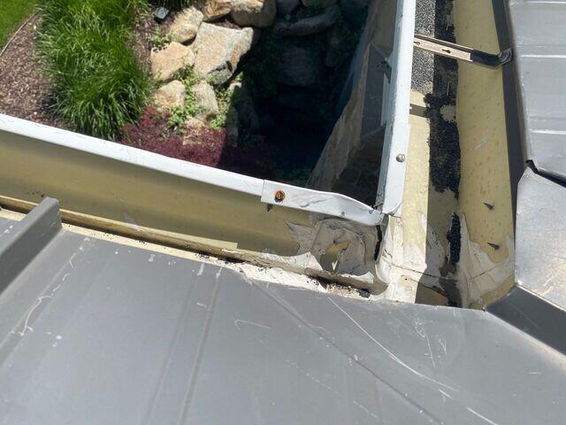 Our team conducted a thorough inspection by entering under the roof to check vents, windows, and joints for signs of water infiltration. We discovered that water had been dripping down the plywood and wooden planks, leading to visible damage at a key corner of the structure. By pinpointing the source of the leak, we provided a targeted repair to prevent future issues.