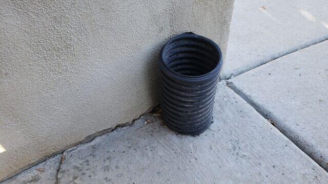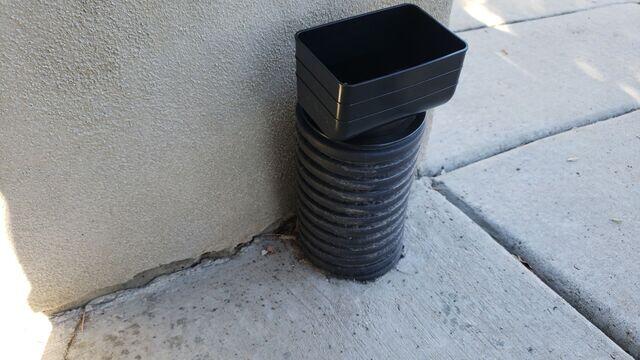 Upon arrival, we identified a detached downspout, which we resecured using a sturdy strap. To enhance drainage efficiency, we attached a corrugated pipe to the downspout and installed a drop-in downspout from the second-story roof, directing water safely into the first-story gutters.